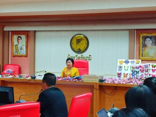 วันที่ 21 ตุลาคม 2568 เวลา 09.30 น. เป็นต้นไป นางศิริพร นาคนิยม ประธานแม่บ้านมหาดไทยจังหวัดชัยภูมิรับมอบงานประดิษฐ์ผีเสื้อ จากเครือข่าย otop จังหวัดชัยภูมิและหน่วยงานภาคีเครือข่ายพัฒนาชุมชนจังหวัดชัยภูมิ “ผีเสื้อจากเศษผ้าไทย” ณ ศาลากลางจังหวัดชัยภูมิ เป็นการนำเศษผ้าไทยประจำถิ่นของจังหวัดชัยภูมิ มาสร้างสรรค์ใหม่ให้เกิดคุณค่า ด้วยการประดิษฐ์เป็น “ผีเสื้อ” ตกแต่งด้วยด้ายลายผ้าและวัสดุต่างๆ ที่ให้ความสวยงาม สื่อถึงความตั้งใจและความร่วมมือของพี่น้องชาวชัยภูมิในการอนุรักษ์ผ้าไทย และใช้วัสดุอย่างคุ้มค่า เพื่อนำไปออกร้านในงานกาชาดของสมาคมแม่บ้านมหาดไทย ประจำปี 2568 โดยจะมีกิจกรรม “จับผีเสื้อเสี่ยงโชค” ซึ่งรายได้จะนำไปสนับสนุนกิจกรรมสาธารณประโยชน์และสนับสนุนภารกิจของสมาคมแม่บ้านมหาดไทย ในการบำบัดทุกข์ บำรุงสุข รวมถึงดำเนินกิจกรรมสาธารณกุศล ช่วยเหลือสังคมโดยส่วนรวมพร้อมทั้งเฉลิมพระเกียรติ สมเด็จพระกนิษฐาธิราชเจ้า ฯ เนื่องในโอกาสทรงเจริญพระชนมพรรษา 70 พรรษา ภายใต้แนวคิด
